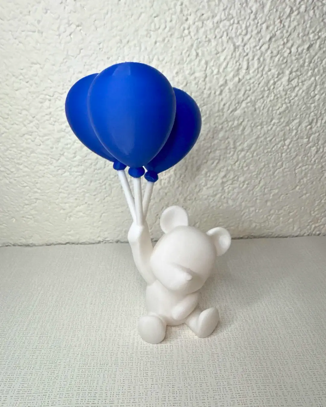 İlk olarak bu figür yüksek kaliteli 3D baskı teknolojisiyle üretildi. Ardından özenle el boyaması yapıldı. Böylece her parça kendine has ve canlı bir görünüme kavuştu. Balonların renk geçişleri ve ayıcığın yüz ifadesi gerçekçiliği artırdı. Bu da ürünü sadece dekoratif değil, aynı zamanda duygusal bir objeye dönüştürdü.