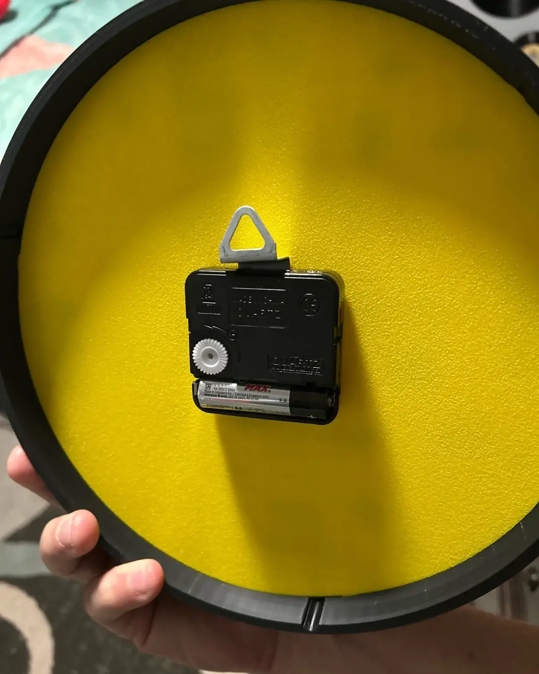 Saatin gövdesini canlı sarı renkte yuvarlak bir formda hazırladık. Üzerine yerleştirdiğimiz Lego tarzı rakamlarla farklı bir görünüm yarattık. 12 kırmızı, 3 yeşil, 6 turuncu ve 9 mavi Lego şeklindeki rakamları özel olarak bastık. Bu renkli kombinasyon sayesinde saat, sıradan olmaktan çıkıyor.