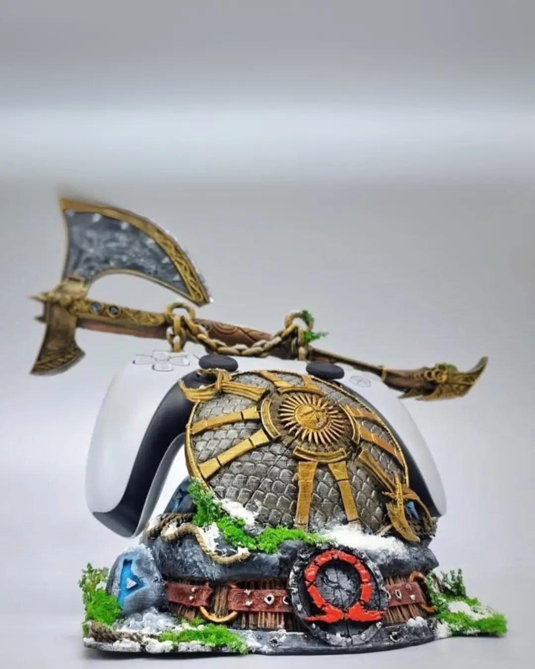 Estetik tasarımıyla oyun köşenize şıklık katan bu stand, aynı zamanda joystick’inizi güvenle saklamanızı sağlar. Böylece, God of War evrenine uygun güçlü ve karizmatik bir görünüm sunarken, oyun alanınızı da göz alıcı hale getirir.